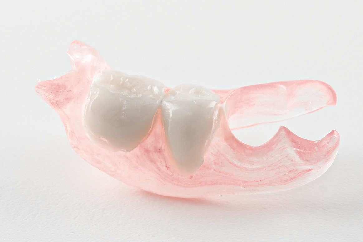 お口を開けても金属が目立たないため見た目が気にならず、残った歯への負担が少ないのが特徴です。